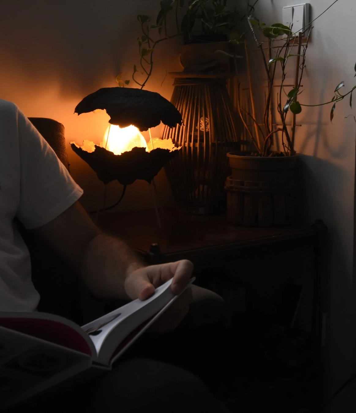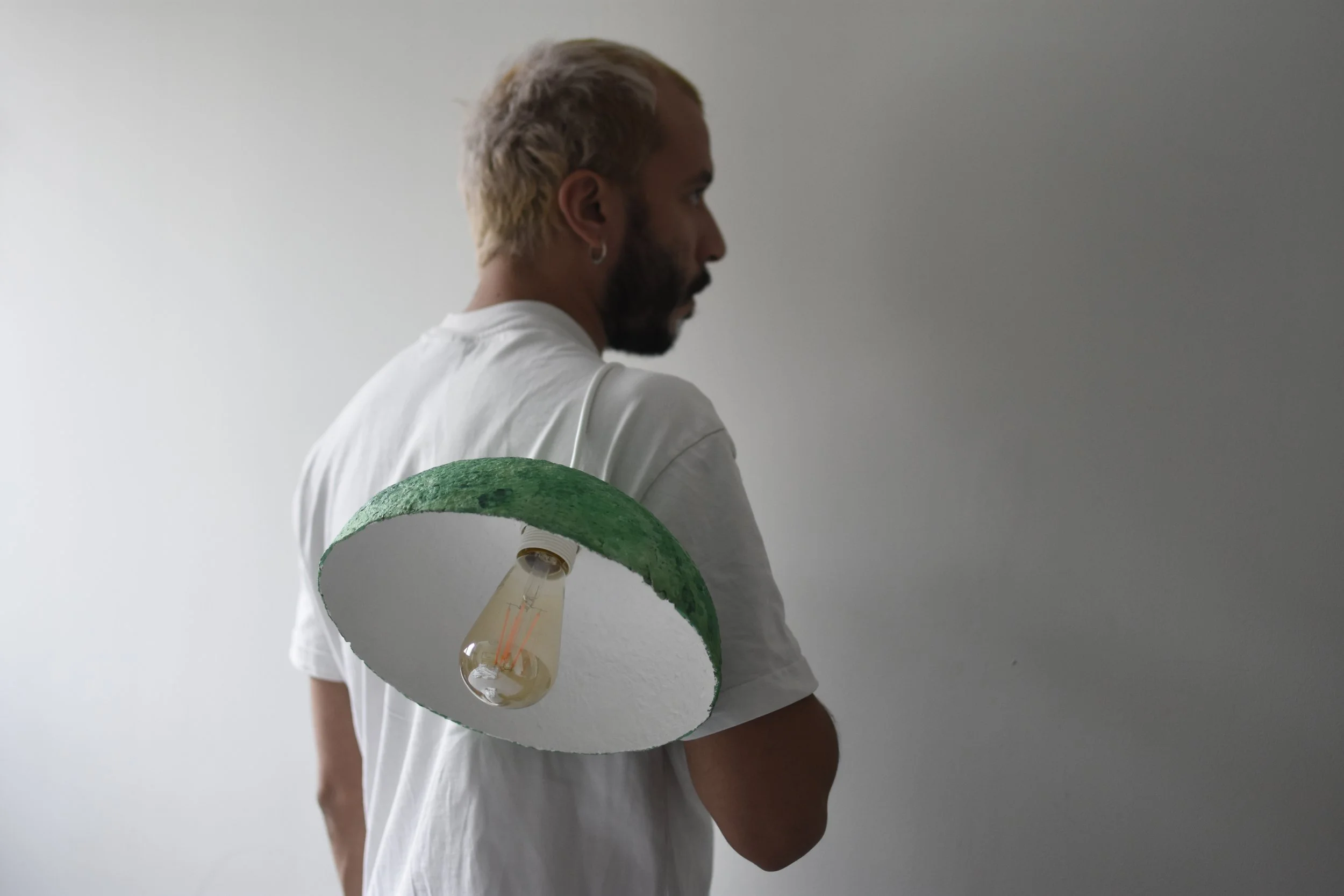 Las bases de las pantallas también llegan con historias propias: piezas encontradas en rastros, lámparas rescatadas antes de ser desechadas, objetos que recupero para darles otra vida. Y cuando lo necesito, voy en búsqueda de aquello que aporta precisión al resultado que deseo lograr. Las demás piezas —cables, conexiones, luz— provienen de proveedores españoles, sin romper la esencia artesanal que sostiene el proyecto.